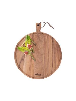 14. Pure Teak Wood Serveerplank rond Ø 35 x 3 cm met sapgoot
